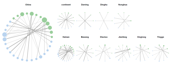不同地理尺度下的叶下珠(算盘子属)与叶下珠蛾(头细蛾)的互作网络